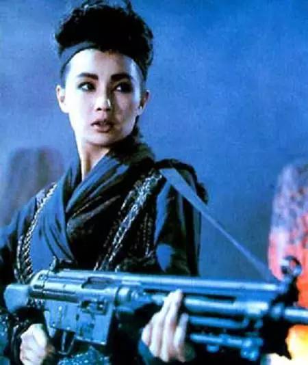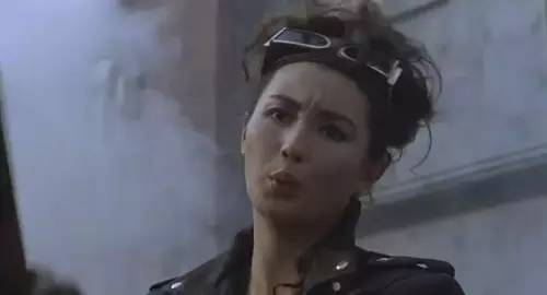 最令人啧啧称奇的恐怕是当时尚在香港影坛有一定影响力的张曼玉。她饰演的陈七以精瘦的身材搭配可爱俏皮的面容,身着一身机车夹克,丝袜迷你裙,尖头高跟靴,嘴里总是咀嚼着口香糖,时不时爆几句英文或粗口,简直酷到炸裂!