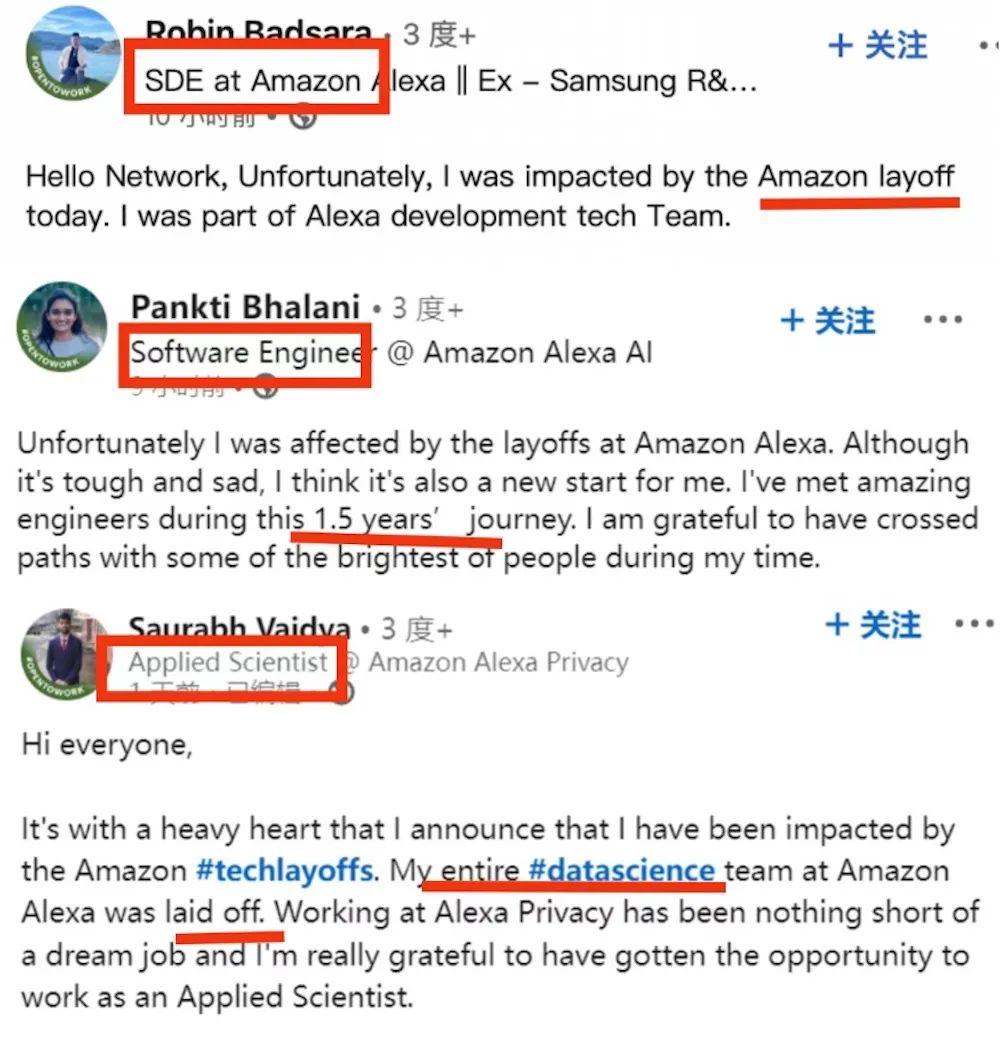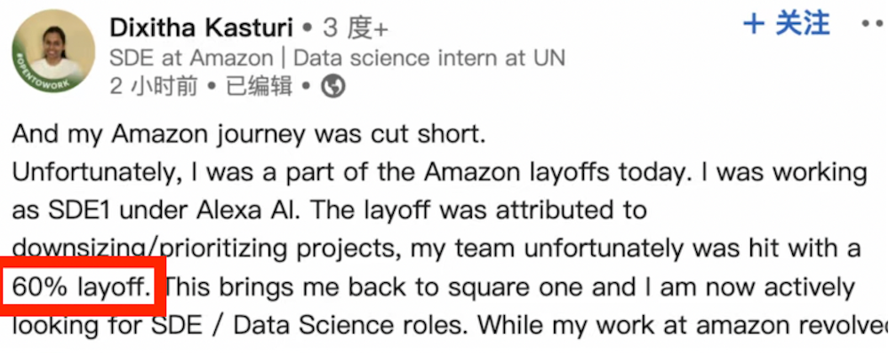 从在LinkedIn发帖的情况来看,事实确实如此。众多亚马逊员工发帖表示,自己受到了亚马逊裁员的影响,并正在寻找新工作。