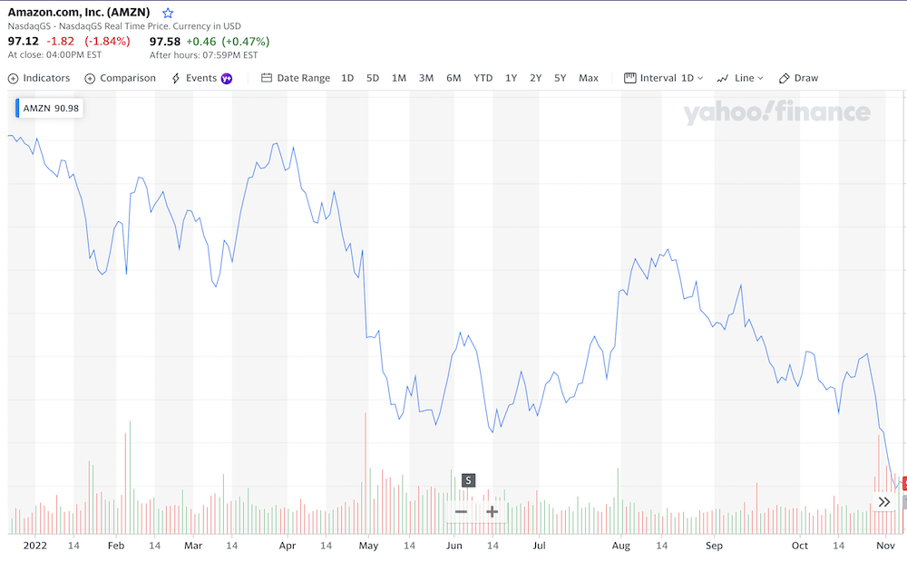最近亚马逊发布三季度财报,表现低于投资者预期。上周,亚马逊市值一度下跌超过1万亿美元,又创历史之最。