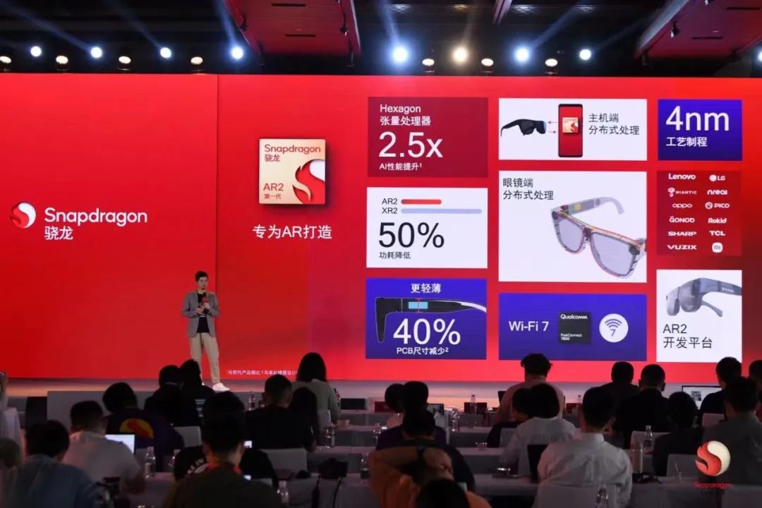 在设备连接上,司宏国还说道,目前骁龙AR2平台主要针对Wi-Fi 7场景下的相关连接,但也支持Wi-Fi 6场景。“具体而言,我们需要考虑到多少人同时连接一个Wi-Fi,以及大家使用时的Wi-Fi速率问题。因此Wi-Fi 7的标准将会给用户带来更好的体验。”