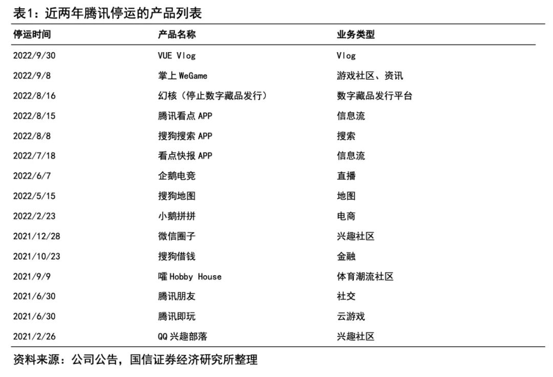 过去两年,腾讯宣布停运大约15个产品,分布于在线教育、电商和游戏直播等领域。这些产品要么跟主业关联性较差,如幻核、小鹅拼拼;要么内部已经有可替代产品,比如企鹅电竞、掌上WeGame、搜狗地图等。
