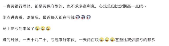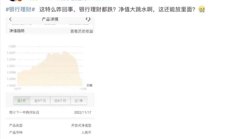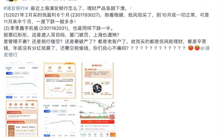除了招商银行,亦有投资者抱怨自己买的浦发银行的悦盈利之6个月定开型F款,11月份以来大幅下跌。