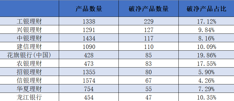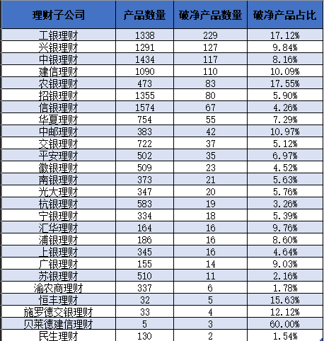 其中,有1176只破净产品来自26家理财子公司,占所有破净产品的63.94%。