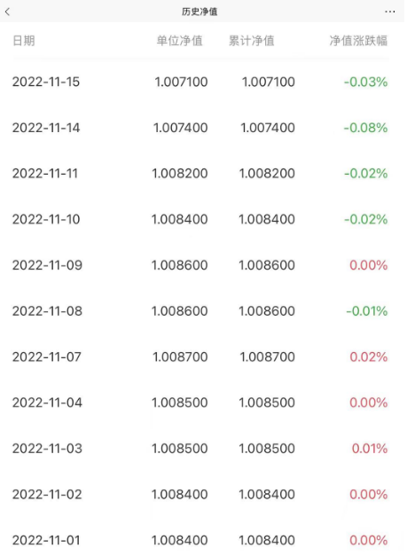 回看该产品数据,近期该产品净值出现一定回撤,或也是导致产品触发大额赎回的原因。11月15日该产品净值为1.0071,较上一日净值1.0074回撤0.03%。11月1日,该产品的净值为1.0084,半个月该产品净值回撤幅度达到0.13%。