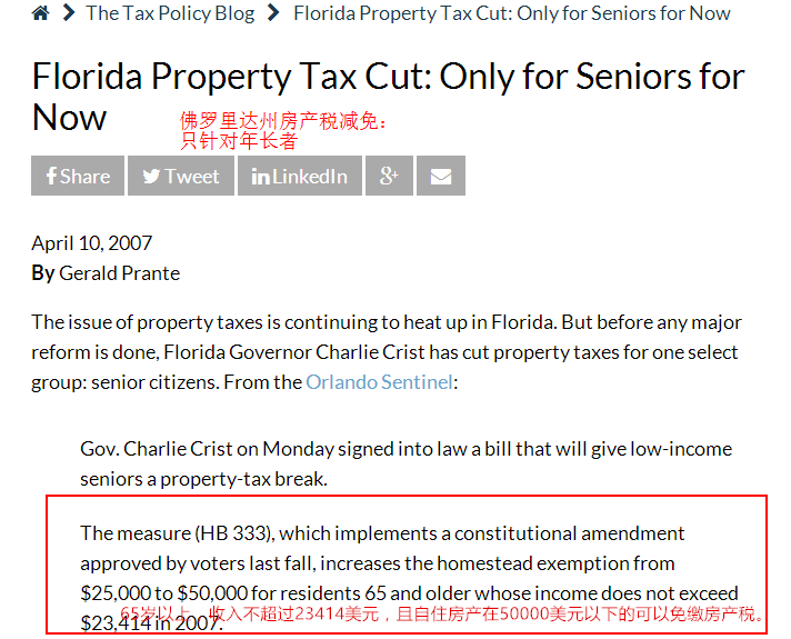 图为佛罗里达州早年的税收减免政策公示,适用于常住居民