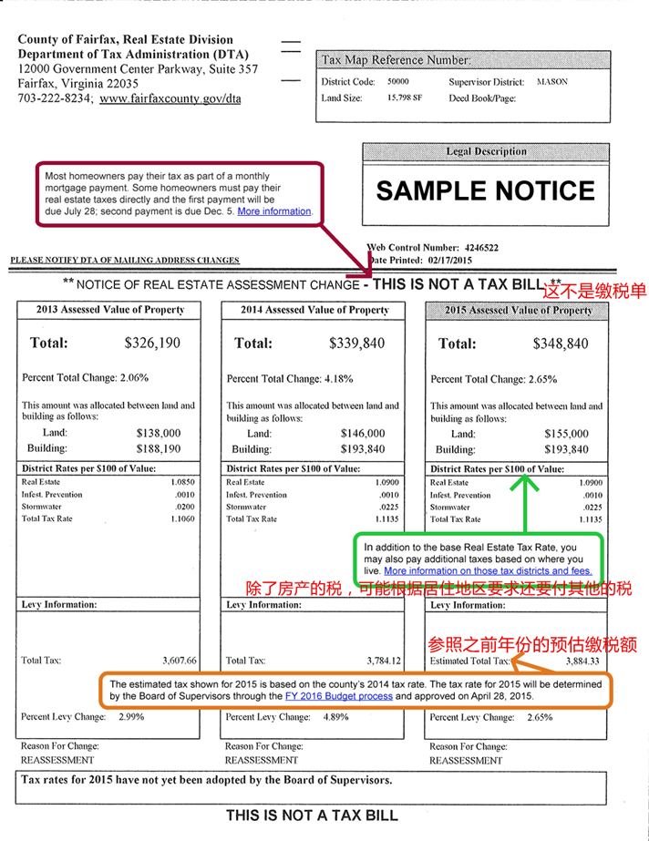 每次的估值结果都会在缴纳房产税之前通知房主,列明估值内容,包括房屋本身价值多少、地皮价值多少等。房主如果对政府的估值有异议,可以要求重新估值。此外,各地区的缴税时间和次数也有所差异,费城一年只收一次,房产估值办会在每年12月给房主寄发房产税表,房主必须在第二年3月31日前支付;而加州房地税分两次缴纳,第一次是当年的11月1日;第二次是次年的2月1日;在新泽西州,一年则分4次。