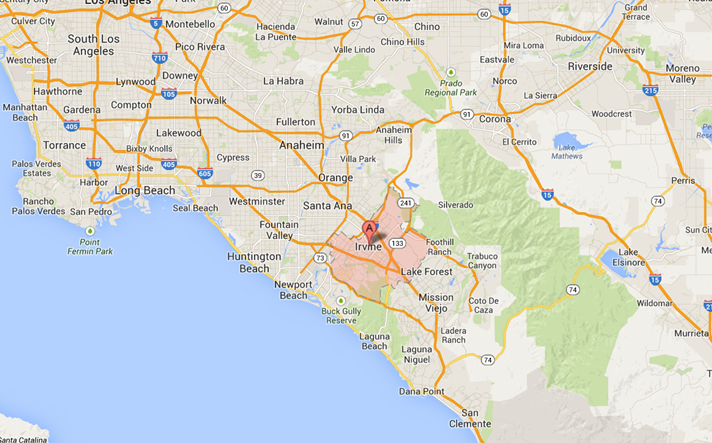 图为尔湾,位于美国加州南部,洛杉矶东南