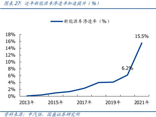 (近年新能源车渗透率情况 图源:国盛证券研究所)