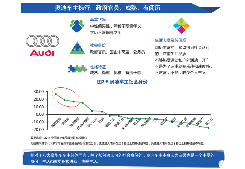 (奥迪车主标签 图源:2014年胡润百富《中国豪华车品牌特性研究白皮书》)