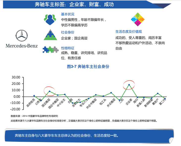 (奔驰车主标签 图源:2014年胡润百富《中国豪华车品牌特性研究白皮书》)