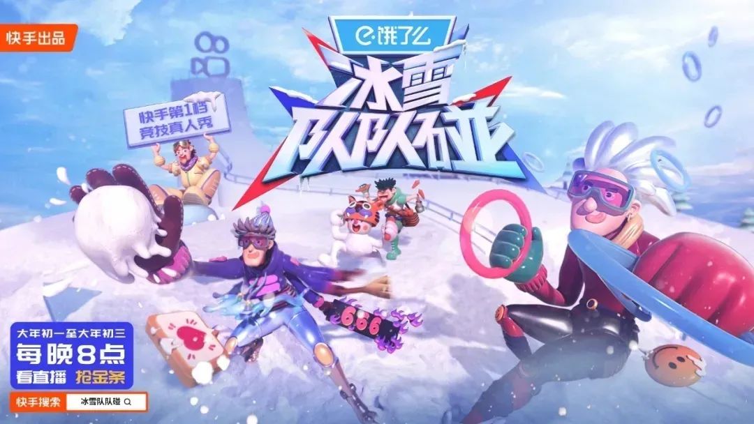 后来,在2022北京冬奥会赛事转播中,快手同样拿下了短视频战略合作版权,并且同样也结合冬奥活动主题,先后推出了第一档竞技真人秀《冰雪队队碰》和冬奥主题访谈节目《冰雪英雄》等内容,获得了饿了么等品牌的冠名和赞助。