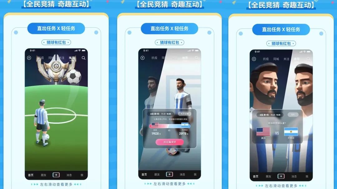 以此次卡塔尔世界杯为例,抖音推出“猜球有红包”的轻任务,将广告内容与趣味游戏进行结合,通过定制体育赛事互动游戏,既让更多用户参与其中,又能够让更多品牌完成传播,而这种互动模式也将会是未来短视频招商中别具一格的亮点。