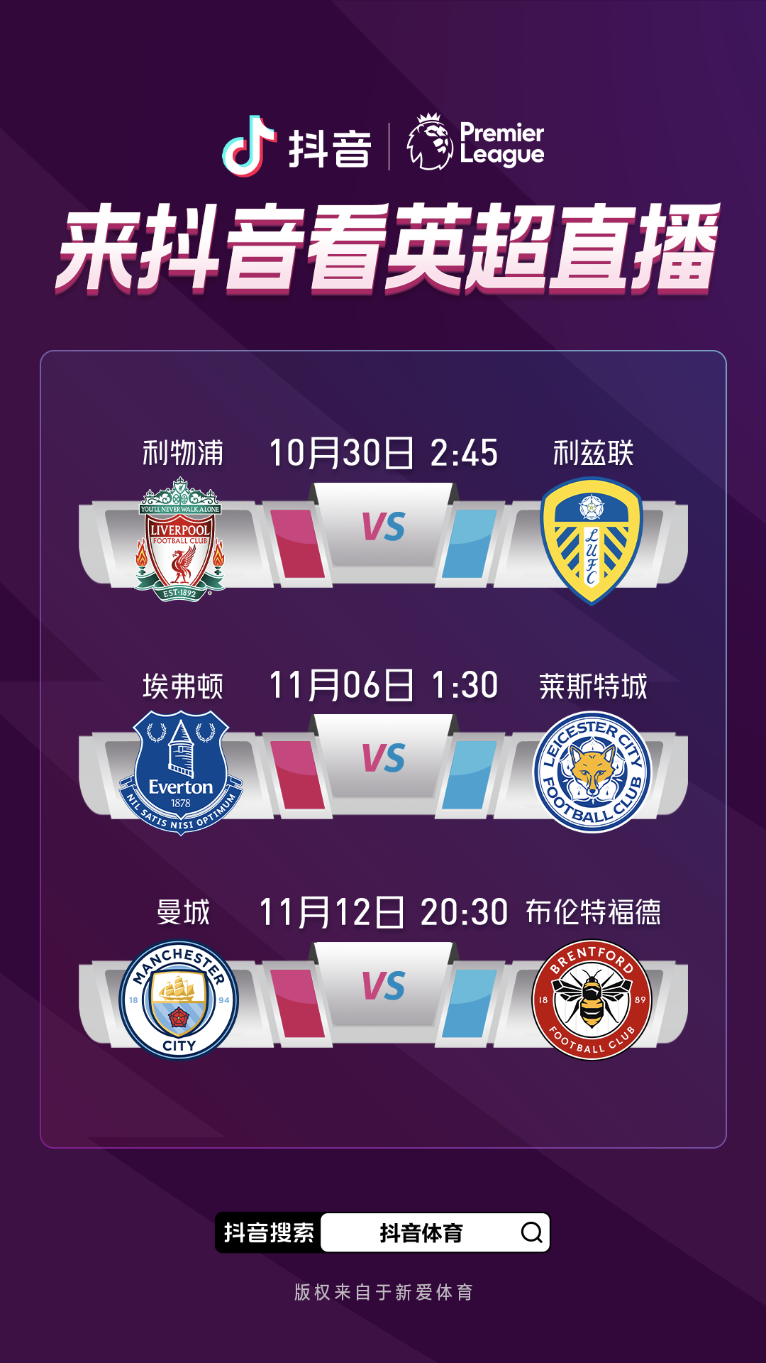 今年以来,抖音也进一步挖掘赛事通道,前不久,2022/23赛季英超联赛开赛,抖音直播先后带来了3场英超焦点比赛的直播,同样也邀请了英超及多个英超俱乐部官方抖音账号在平台分享赛季最新动态和内容。