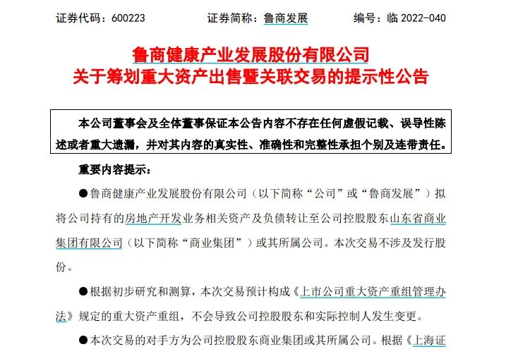 C2CC传媒X新妆资讯注意到,若本次交易顺利完成,意味着鲁商发展将彻底剥离房地产开发业务,加码大健康产业。