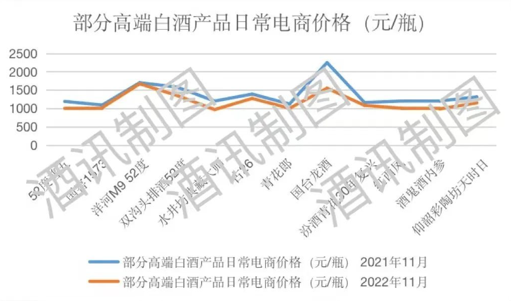 酒讯智库梳理了解到,过去近一年的时间,几乎所有的白酒在终端价格上都有或大或小的跌幅。但对比来看,高端白酒中,名优品牌的跌幅相对较小,而二三线高端产品,尤其是部分酱酒产品的跌幅相对较大。