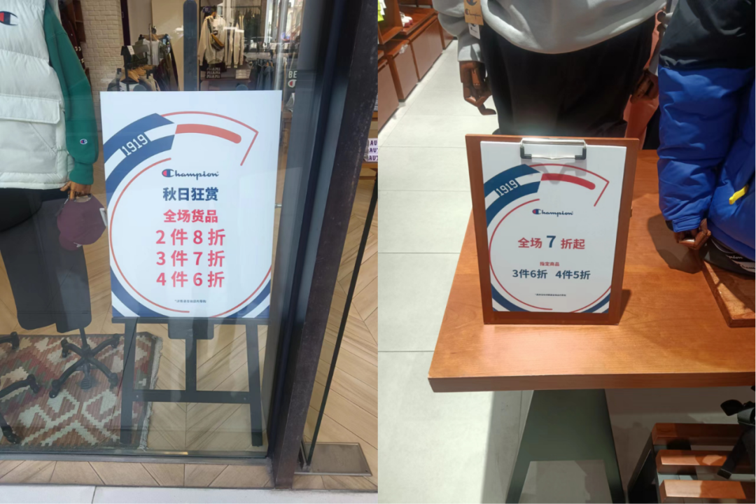 左为上海世茂广场旗舰店折扣,右为标准门店折扣,图源:品牌数读