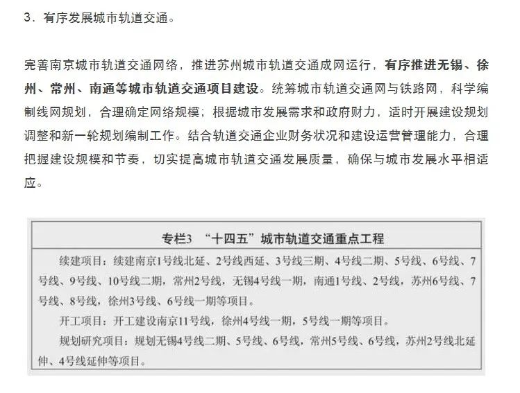 江苏省“十四五”城市轨道交通重点工程中,不仅是续建项目和开工项目提前“收尾”完成,一些属于规划研究的项目也陆续开工。