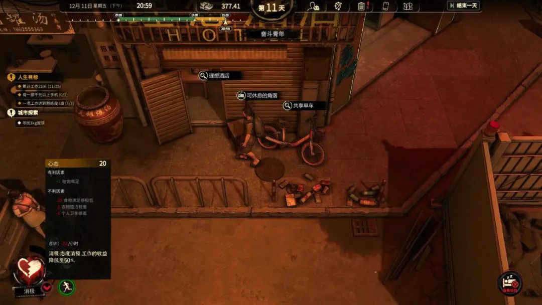 当然,超高的自由度也成为这款游戏带来了更多的玩法选择。相比两点一线的枯燥人生,可能有些玩家更喜欢“躺平”后的生活,你可以是一名丐帮帮主,早上勤勤恳恳捡垃圾摆摊,晚上摇身一变去后巷小姐姐那里成为“榜一大哥”。也可以是一名“三和大神”,晚上通宵上网,早上和下棋老头大战三百回合,稳定日结。甚至是堕落成飞贼,每到夜晚化身成为“电瓶搬运者”,反正这辈子都不会去打工的。