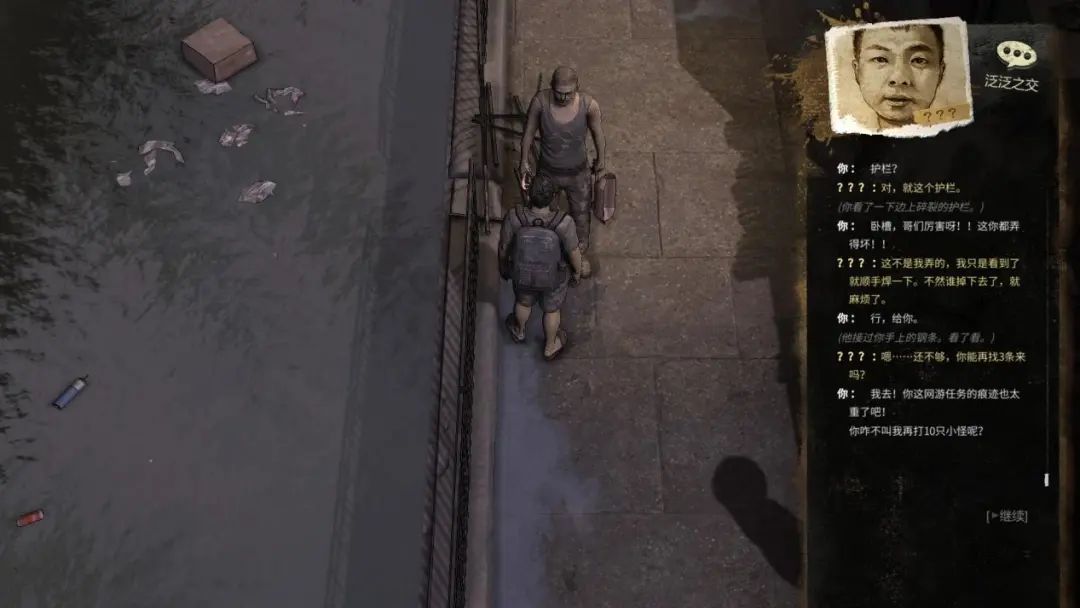 在细节方面,什么刚刚下车就遭遇“飞来横祸”,睡大街醒来发现被洗劫一空,让这款游戏显得“格外真实”,各种随机事件以及与陌生人的邂逅交流,也为《大多数》的冰冷世界增添了一丝温情。