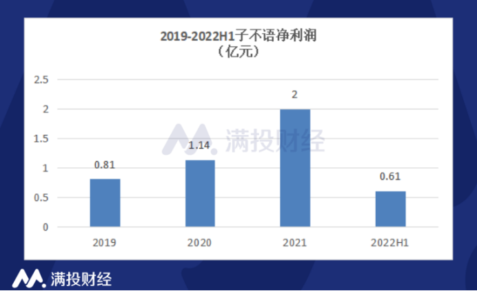 在收入持续上升的同时,公司净利润在2022年与2021年相比却近乎“腰斩”。子不语2019年至2021年及2022年H1的净利润分别为0.81亿元、1.14亿元、2亿元、0.61亿元,2019年至2021年的复合年增长率为57.13%,2022年上半年净利润较去年同期下降46.3%。