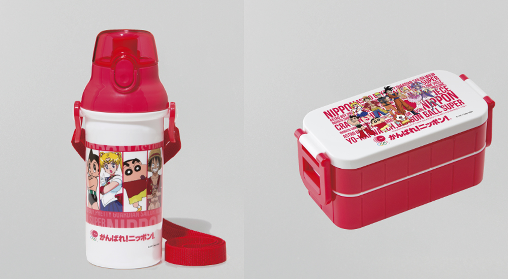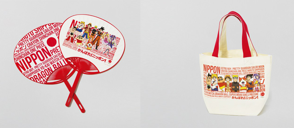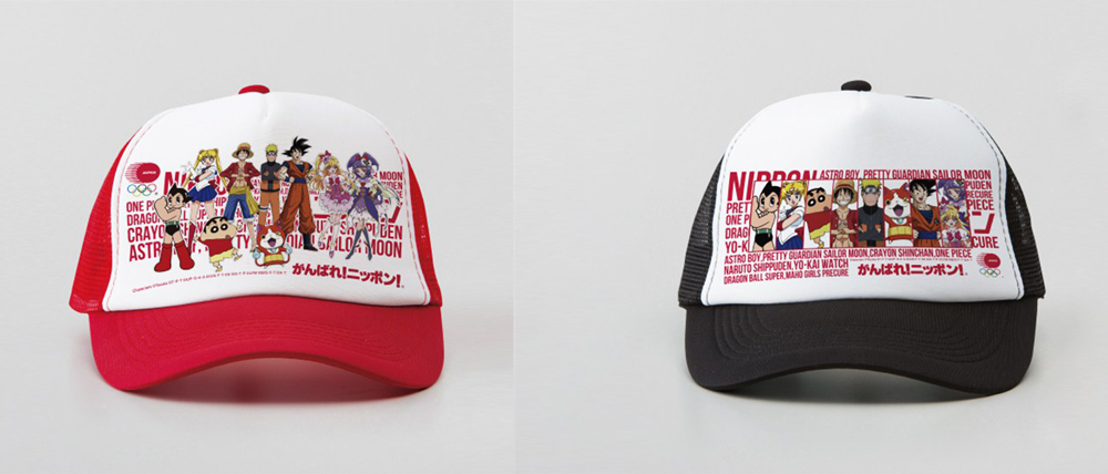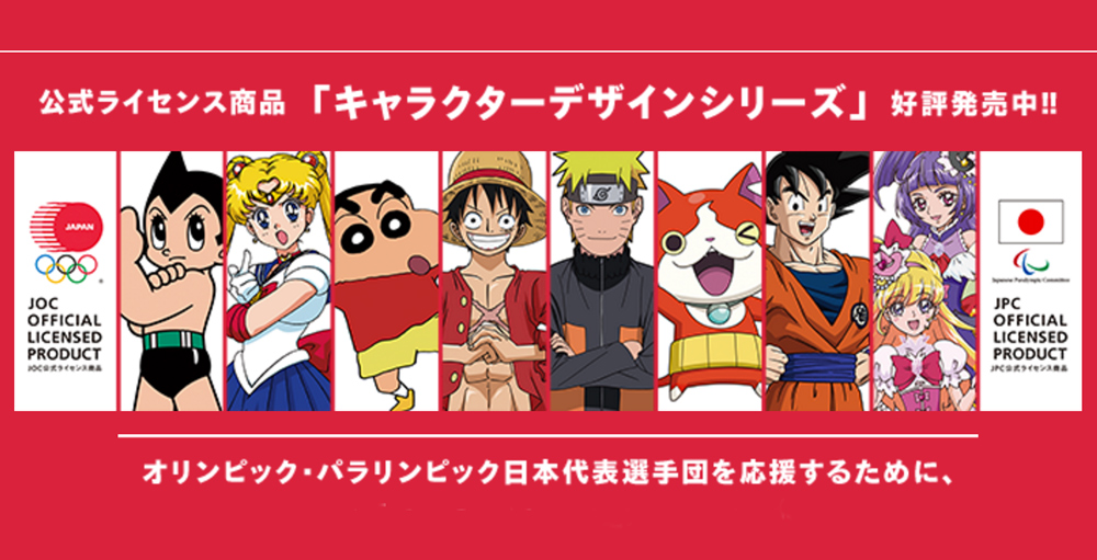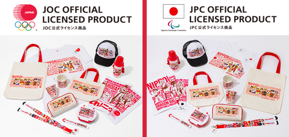 周边产品以奥运会和残奥会两个版本推出,包括儿童和成年版的T-shirt、货车帽、毛巾、钥匙扣和托特包等单品。在设计上,不仅是同一件单品上集合了很多经典动漫人物,并且印上「がんばれ!ニッポン!(加油!日本!)」字样来打气,体现出奥运竞技的意味。单品都发售在 Tokyo 2020 Official Online Stop店铺中。