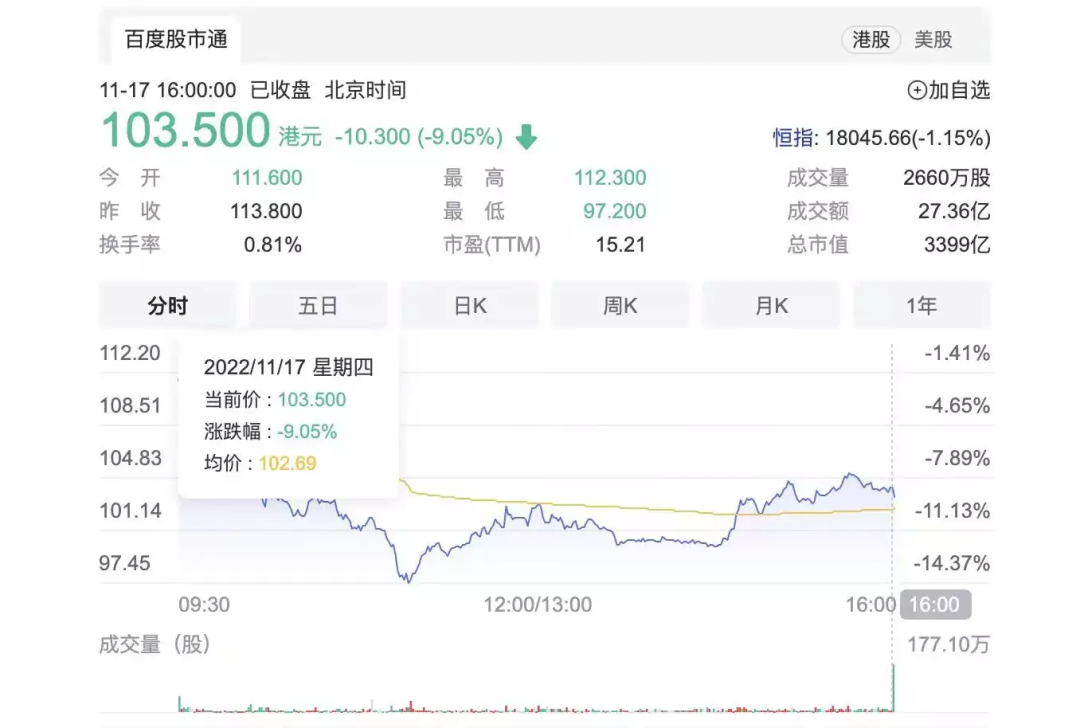 但显然,这样的表述并不能令投资者满意。截至11月17日港股收盘,网易股价跌至103.5港币/股,下跌9.05%。