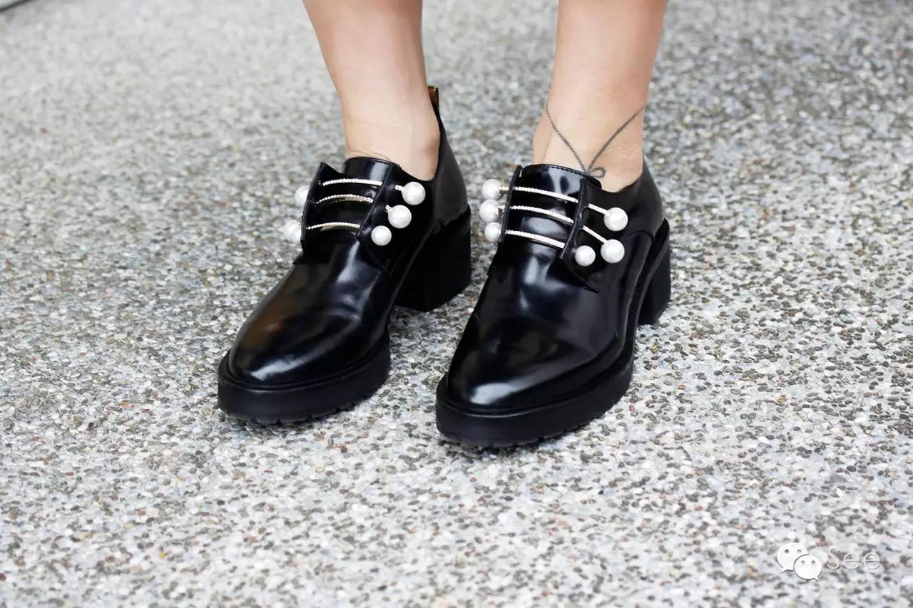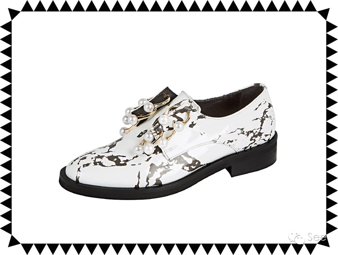 中间那双大理石纹的,是今年很火的珍珠皮鞋Coliac,¥ 5500