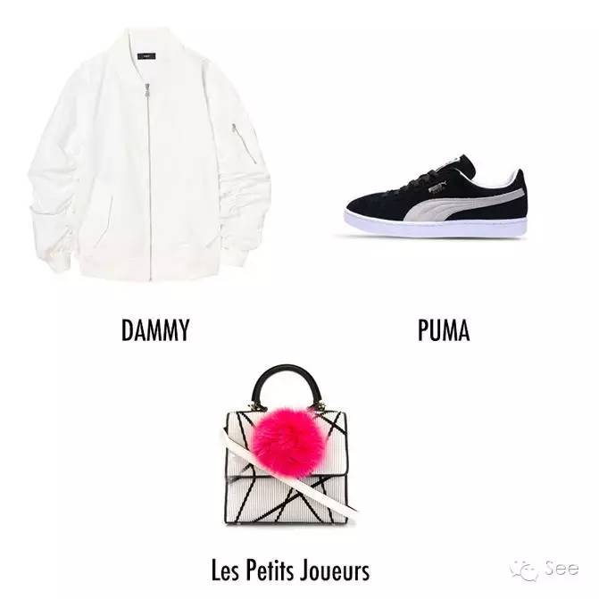 DAMMY开领露肩外套,配上吊坠Chic和Puma的运动鞋,就是个青春活力的少女!