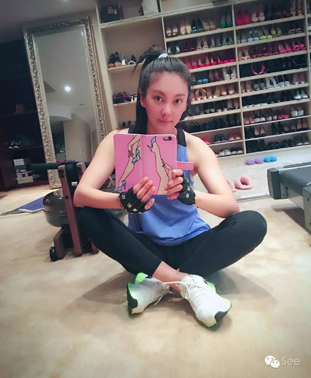 运动狂魔张雨绮每一次晒运动照的时候,我只注意到她身后的鞋柜,大概也就只有个几百双吧。。
