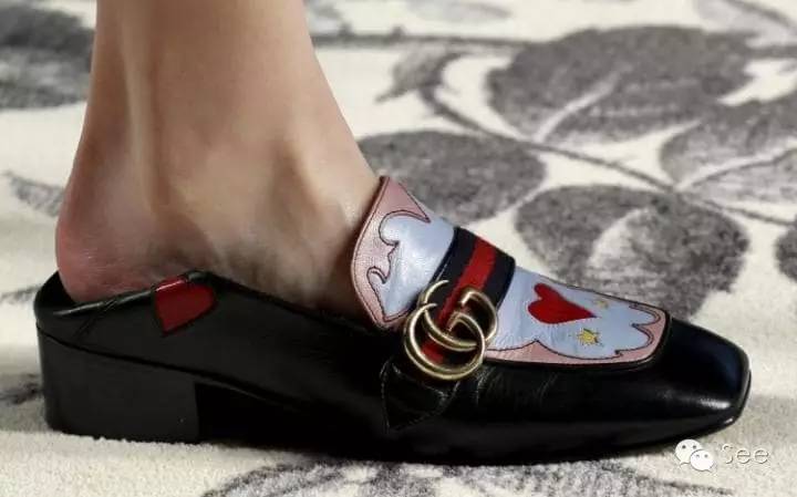 左边Gucci她也有好几双。张雨绮这双是小低跟。