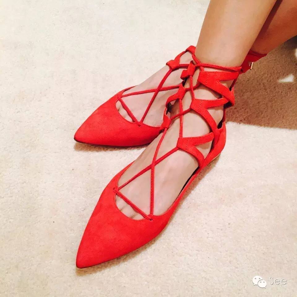 她自己之前还晒过红色的平底菠萝鞋。