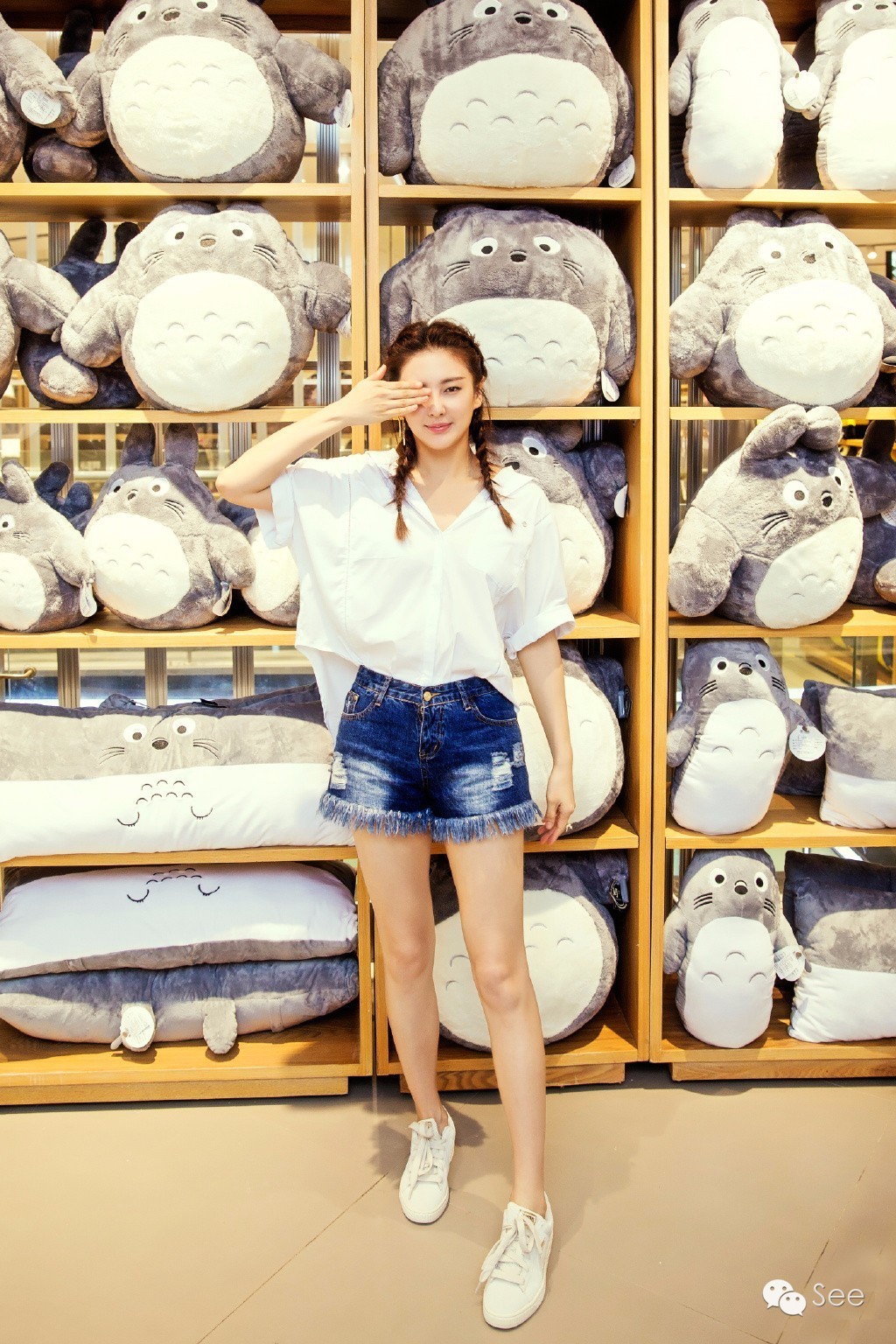 至于那一大排高跟鞋,See姨估计大概她也跟我们一样买来以后只穿过一两回。不过我猜的没错,张雨绮私下真的很喜欢穿平底鞋。比如录节目之前她是这样的。