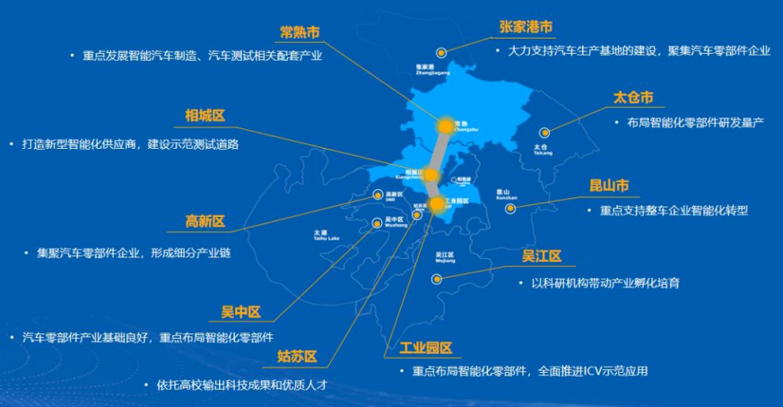 苏州市工信局局长万利在《苏州市智能车联网产业创新集群的发展白皮书》中介绍道:“苏州正构建以智能汽车基础支撑信息交互为核心的完整产业链生态,覆盖了自动驾驶算法,激光雷达、高精地图、高级辅助驾驶等三十多个细分领域”。