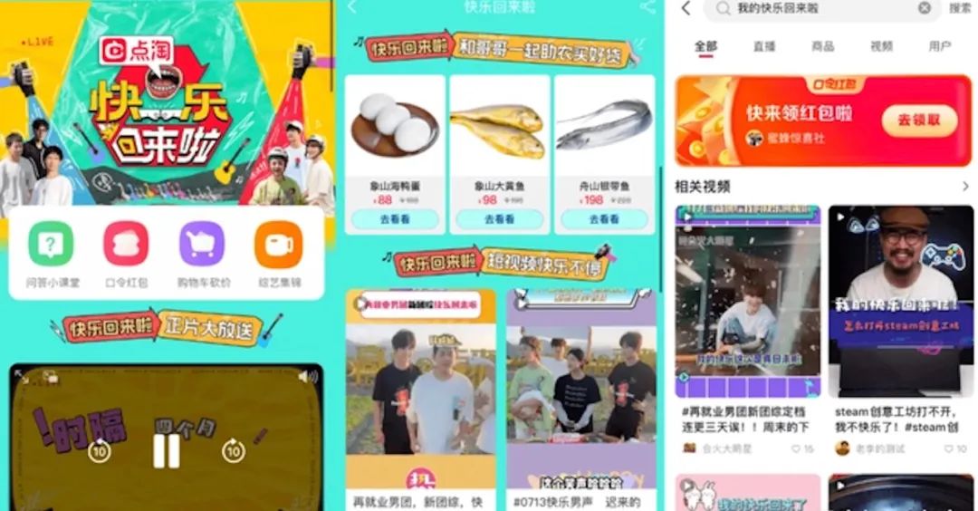 无独有偶,冠名《快乐回来啦》的点淘借势综艺在自家平台开启了一系列联动营销,在APP里拿到正片播放权之外,开辟出专属综艺专区贩卖节目里的“象山农货”,并邀请苏醒、王栎鑫入驻点淘进行双11直播带货,在节目内外实现了综艺对冠名商的多维营销助力。