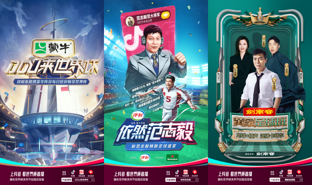 手握版权的抖音吸金力超群,为名嘴定制的多个栏目都招揽到不同行业的金主,其中乳企蒙牛冠名了每日世界杯观赛指南节目《DOU来世界杯》,范大将军脱口秀栏目《依然范志毅》拿到了伊利冠名、喜力啤酒赞助。