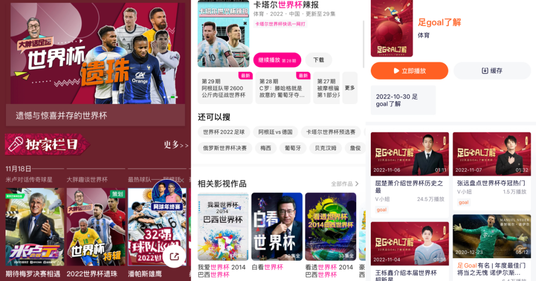 在短视频观赛热潮的冲击下,长视频平台在这个世界杯季表现得相当低调,但仍然有平台自制了一些世界杯衍生节目,试图坐上这场流量盛宴的餐桌。