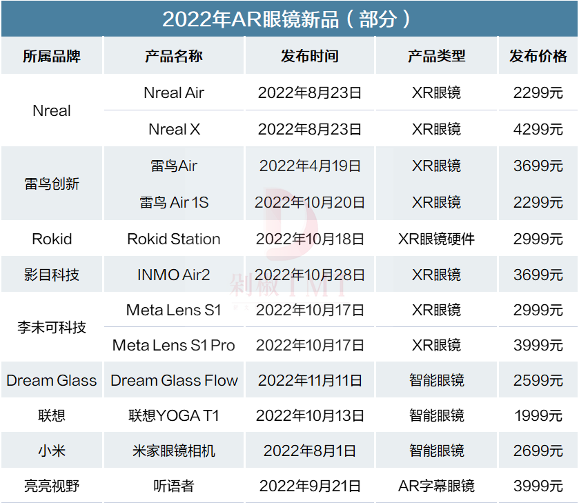 2022年当属AR眼镜的爆发元年,在这一年中,AR眼镜厂商们接二连三地发布新一代旗舰AR眼镜产品。