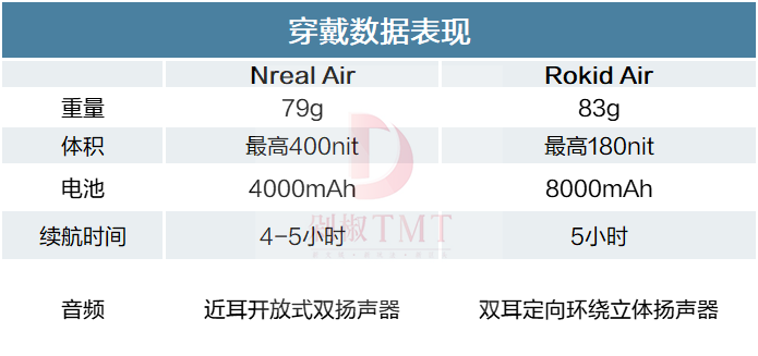 剁主梳理了国内两大头部厂商的产品数据发现,为了培养消费者的AR观影需求,这些厂商们在穿戴体验和观影效果两方面“大卷特卷”。