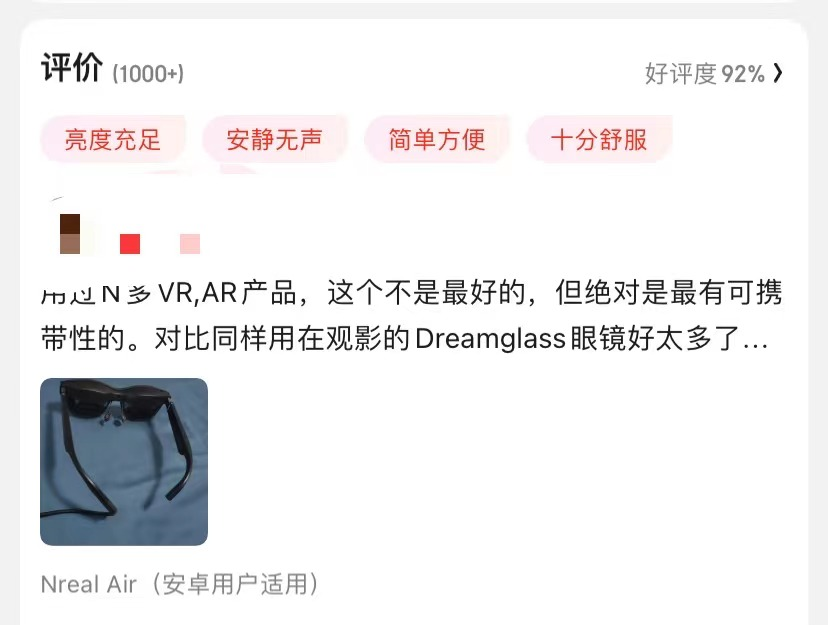 不少购买过AR眼镜的消费者都对剁主坦言,“大屏体验确实挺爽,但好像就是买了一块儿显示屏而已。”