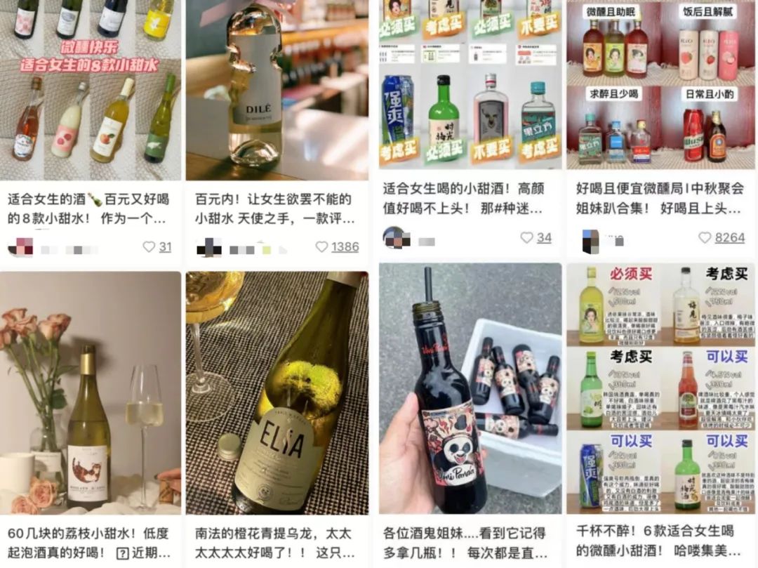 于是,打开小红书、微博和各种短视频平台,总能看到“适合女生的小甜水”、“女生放心喝的小甜酒”、“少女心必备晚安酒”等各种低度酒推荐和营销。据北京商报,仅 2021 年上半年,电商平台的果酒销售额同比增长 1626.2%,社交平台上有关“女生酒”的营销铺天盖地,就连传统白酒品牌都在推出玫瑰、草莓主题的女性酒。