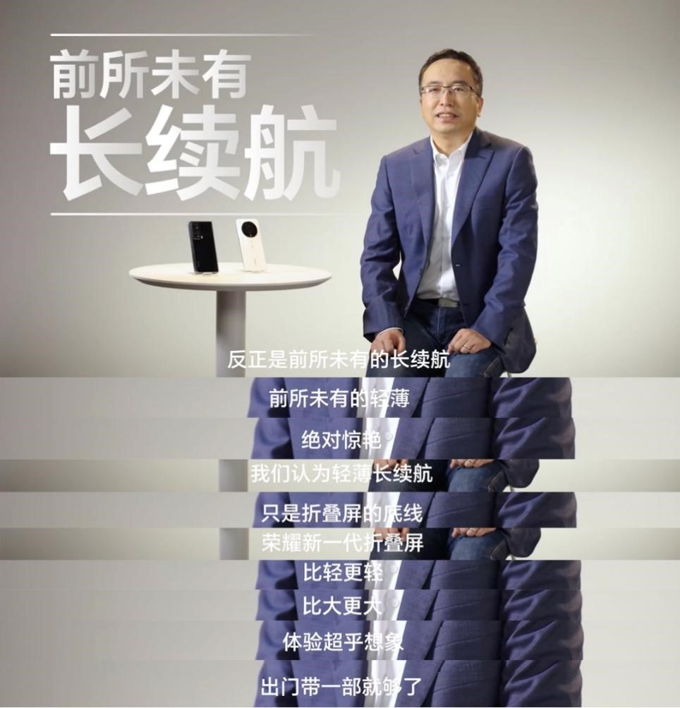 其实在此之前,荣耀终端CEO赵明就在一段问答视频中提到“荣耀新一代折叠屏在结构上挑战了设计的各种不可能,反正是前所未有的长续航,也是前所未有的轻薄”,“比轻更轻,比大更大”。不难看出,荣耀Magic Vs的产品定位非常明确,那就是要打造行业首款兼顾轻薄和长续航的折叠屏手机。
