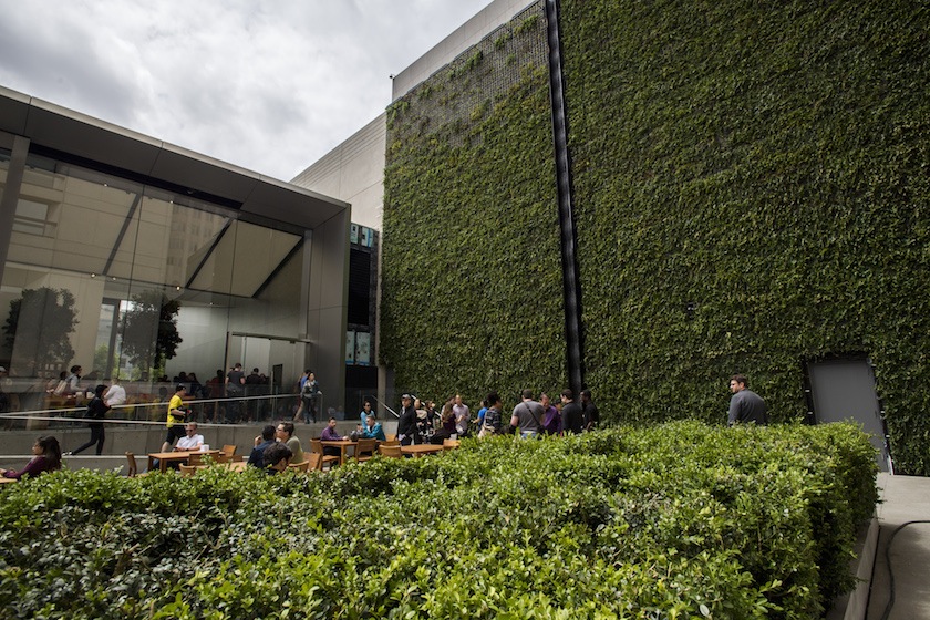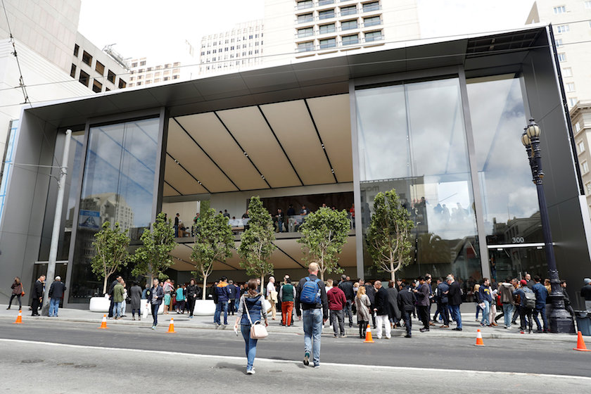 2016年5月19日是苹果最初两家零售店开设15周年的纪念日。在同一个周末,苹果揭幕了位于旧金山的“第二代门店”。这家店的正门朝向联合广场,两层楼高的巨型玻璃门取代了经典的白色苹果logo;天才吧扩展成为天才树(Genius Grove),不再是柜台而是融合进了座位;用像街道的形式(The Avenue),以长条的陈列墙来展示附属产品;二层设置更开放的多元交谈区(The Forum),面向6k电视墙摆放了上百个积木妆的木凳用于社区活动;店铺后方还有一个类似小广场(The Plaza)的区域,24小时开放并提供免费Wifi。
