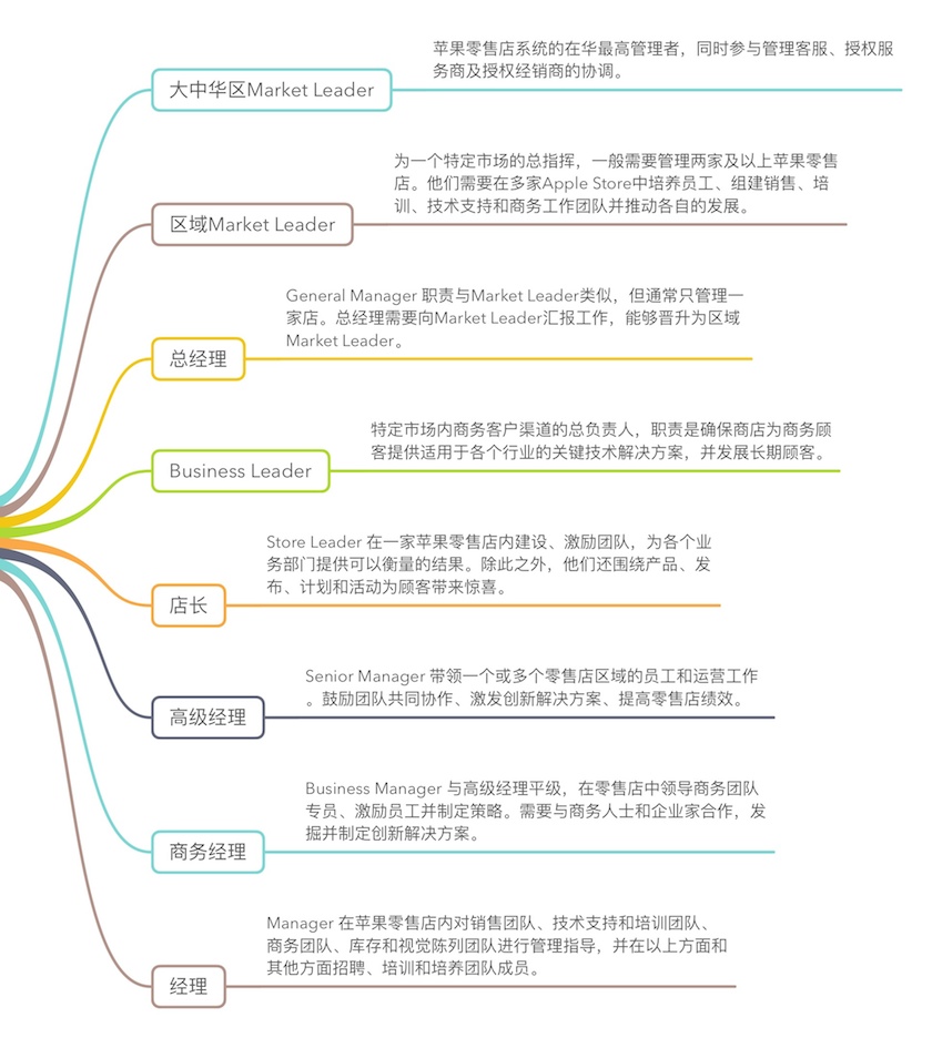 一位不愿具名的零售行业资深猎头告诉界面新闻,苹果会委托猎头招聘Store Manager、Senior Manager、Store Leader、Market Leader等管理层职位。虽然不要求应聘者一定要有零售背景,但实际招聘的情况是优先考虑有零售背景的人。