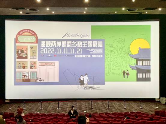 11月18日晚,第三届海峡两岸影像文化周两岸影视文化专场——“2022海峡两岸恋恋乡愁主题电影展映”宁波站在宁波影都东门口店开启展映。