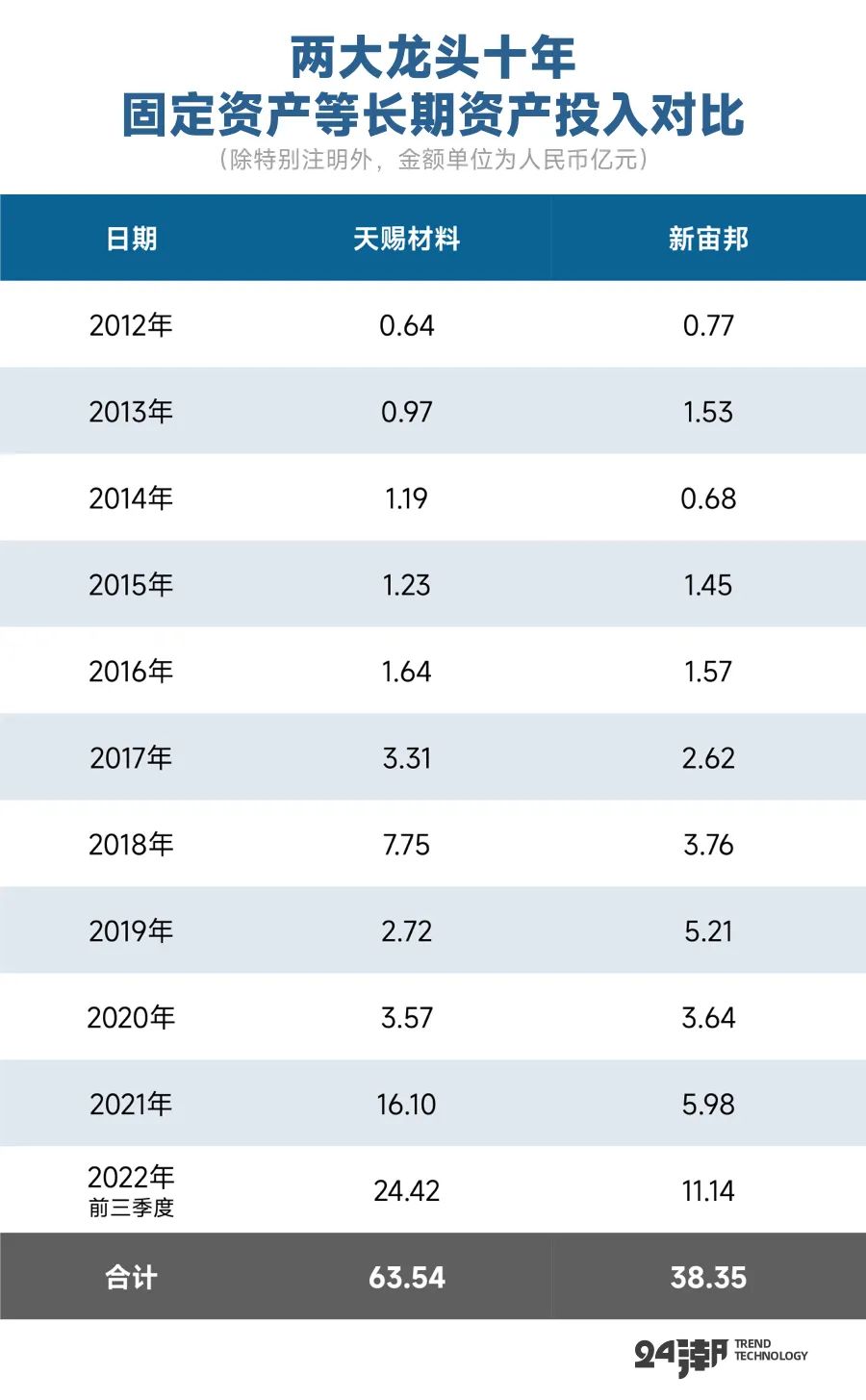 从投资数据上看,天赐材料也展现了更高效的战略执行力。2022年前三季度天赐材料 “购建固定资产、无形资产和其他长期资产支付的现金” 为24.42亿元,这是新宙邦的2.19倍。