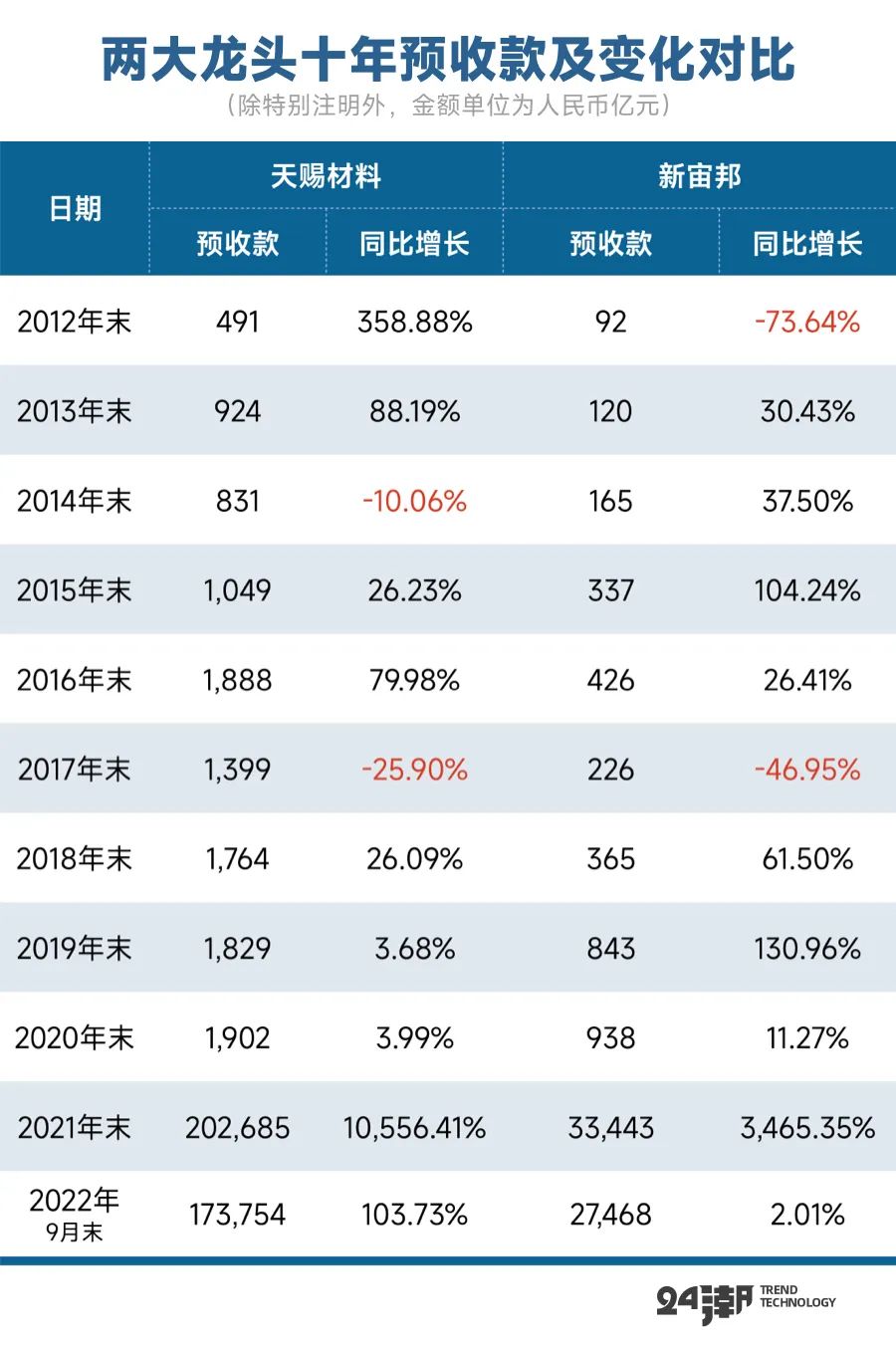 从这一数据变化看,天赐材料订单可能更为充足。据24潮统计,截止2022年9月末新宙邦 “合同负债” 规模为2.75亿元,仅同比增长2.01%,而天赐材料 “合同负债” 规模达17.38亿元,同比增长了103.73%。
