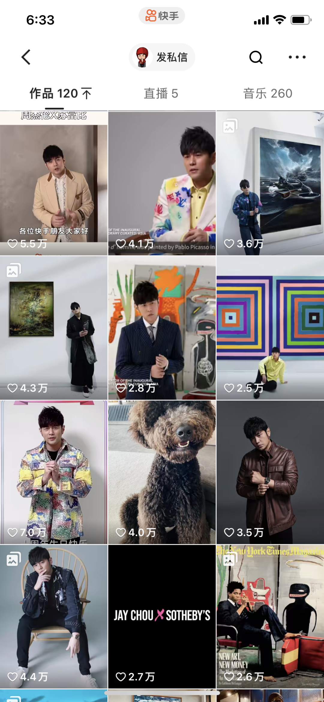 官宣周杰伦入驻之后,快手与他旗下的杰威尔音乐达成合作,获得其全部歌曲及MV的短视频平台授权,并向平台上的创作者开放260首周杰伦经典音乐的使用权。