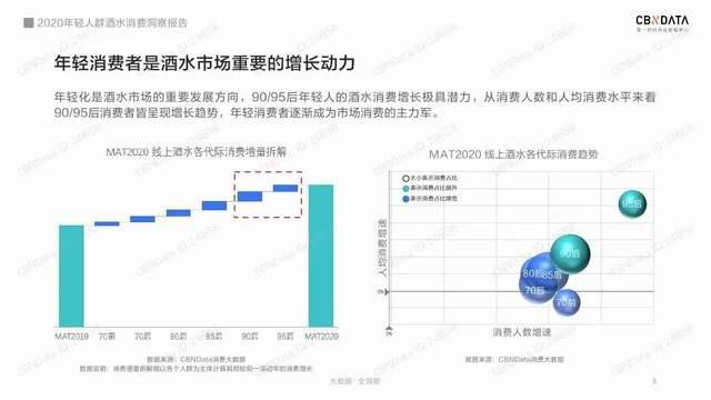 《2020年轻人群酒水消费洞察报告》显示,年轻化是酒水市场的重要发展方向,90/95后年轻人的酒水消费极具潜力,从消费人数和人均消费水平来看,90/95后消费者皆呈现增长趋势,年轻消费者逐渐成为市场消费的主力军。