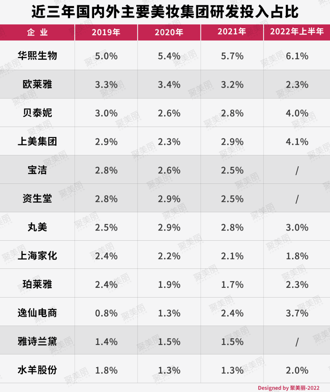其中,华熙生物的业务模式包含上游原料研发与生产,具有一定的特殊性,但表中另外其他公司的研发投入占比基本都超过了前几年的比率,国货总体进步明显。