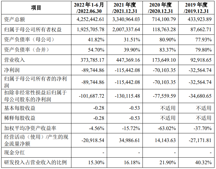 值得注意的是,蜂巢能源至今仍未实现盈利。招股书显示,2019年至2022年上半年,公司营收分别为9.29亿、17.36亿、44.74亿和37.38亿元,归母净利润分别为-3.26亿元、-7.01亿元、-11.54亿元及-8.97亿元。对此,蜂巢能源表示系由于研发投入强度较高、产能爬坡以及原材料采购价格增长等因素造成。